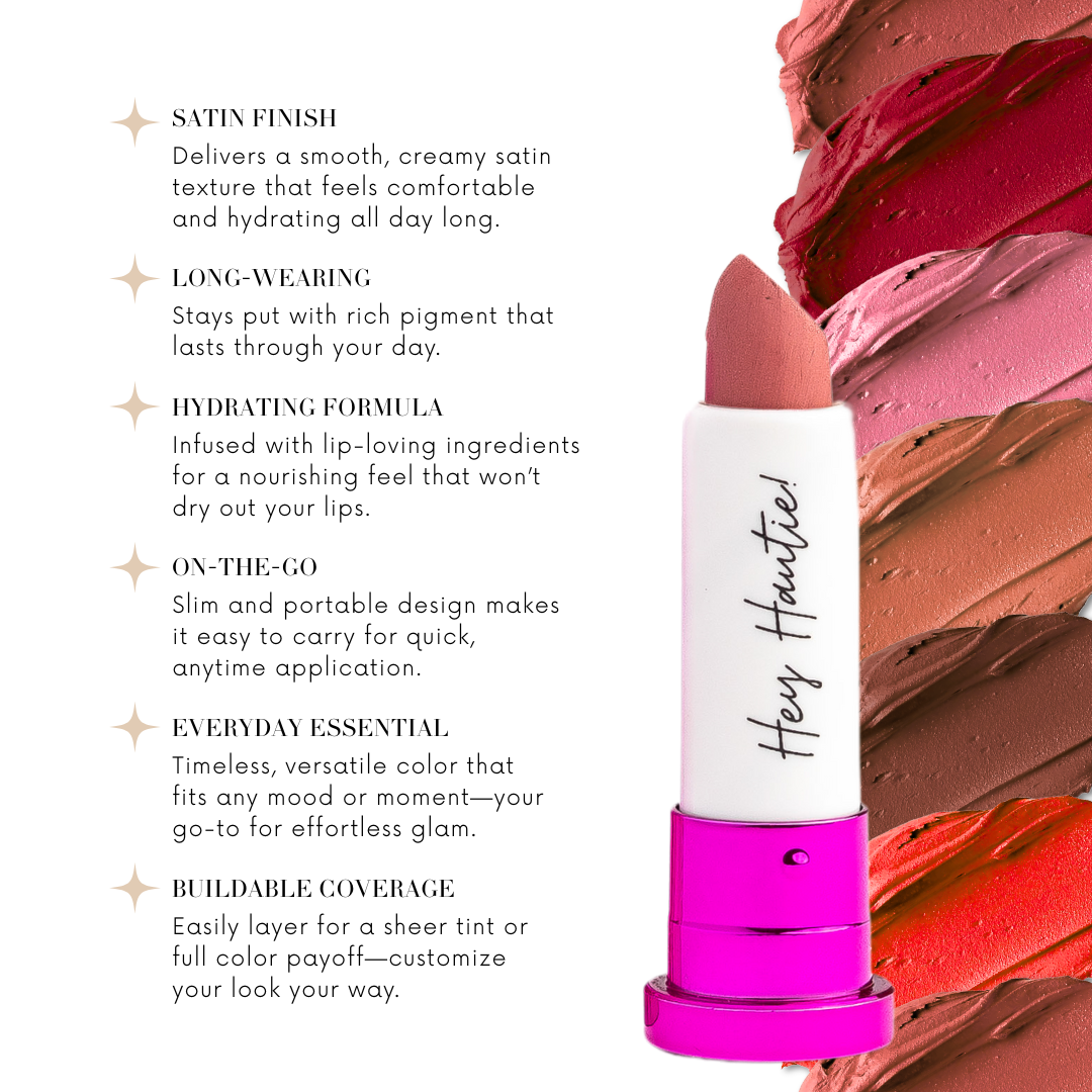 Introducing 4Ever Haute Long Wearing Lipstick in Red Haute, the perfect shade of red by Haute Minute Makeup. This clutch-sized beauty delivers bold, vibrant color with a luxurious satin finish that stays flawless all day. Red Haute is the ultimate red—timeless, powerful, and flattering on all skin tones.